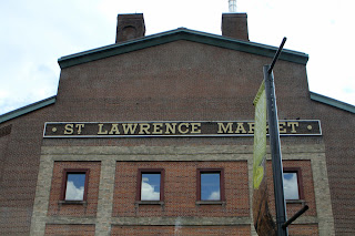 Back on the bus to take us to the ship to begin our sea journey. First we stopped by St. Lawrence Market for a brief run through. Our local guide made sure we knew we could get some good cheese and sausage in there. He didn't tell us how to keep it in a cabin on a cruise ship though. We did check it out and wish we had the means to keep some of that cheese cool and a grill to fire up for the steaks along with the sausage.
